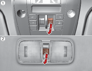 Certifique-se de que o vidro do teto de abrir está na posição totalmente fechada. Se o vidro do teto de abrir estiver aberto, empurre o interruptor para a frente até o teto de abrir ficar totalmente fechado.