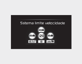 A Assistência do limite de velocidade inteligente avisa-o e controla o veículo através da Apresentação do limite de velocidade, Aviso de excesso de velocidade e Alteração da velocidade programada.