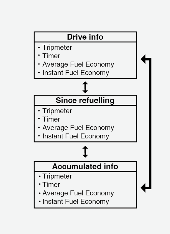 Si vous ouvrez la porte du conducteur après avoir coupé le moteur ou après 3 minutes après le redémarrage du moteur, les informations sur la conduite sont remises à zéro.