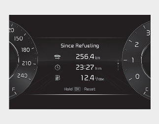 Si vous appuyez sur le bouton « OK » pendant plus de 1 seconde après l'affichage des informations sur la conduite, les informations sont réinitialisées.