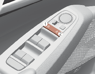 Pour verrouiller toutes les portes du véhicule, appuyez sur la partie gauche (1) pour le contacteur du côté conducteur.