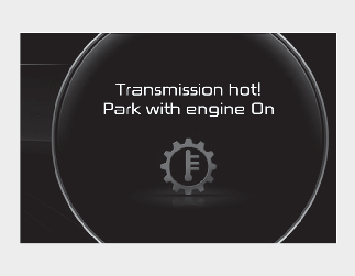Si le véhicule continue à rouler et que la température de l'embrayage atteint la limite maximale, l'avertissement « Transmission Hot! Park with engine on » (boîte de vitesse chaude ! stationnez avec le moteur en marche) s'affiche. L'embrayage est alors désactivé jusqu'à ce qu'il revienne à une température normale.