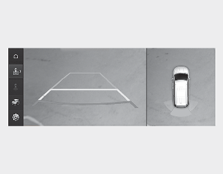 Le guidage de stationnement s'affiche sur le côté droit de l'écran de la vue panoramique lorsque le guidage de stationnement en vue du dessus avant ou arrière est sélectionné.
