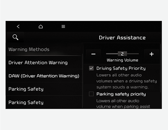 Assurez-vous que les méthodes d'avertissement que vous avez sélectionnées peuvent s'appliquer aux méthodes d'avertissement des autres systèmes d'aide au conducteur.