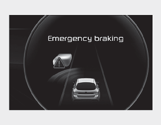 Lorsque le véhicule est immobilisé à la suite d'un freinage d'urgence, le message d'avertissement s'affiche dans le combiné d’instruments. Pour votre sécurité, le conducteur doit appuyer immédiatement sur la pédale de frein et vérifier les alentours.