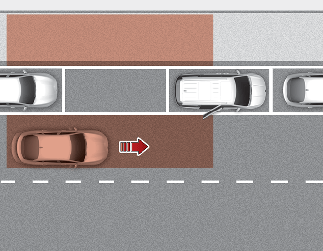 Après l'arrêt du véhicule, si un véhicule venant de derrière est détecté alors qu'un passager ouvre une portière, l'alerte de sortie en sécurité prévient le conducteur par un message d'avertissement et un signal sonore pour éviter un impact.