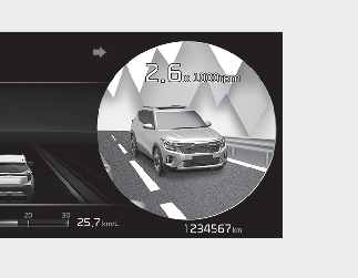 La visualisation de l’angle mort affiche la zone d'angle mort arrière du véhicule dans le combiné d’instruments lorsque le clignotant est allumé pour aider à changer de voie en toute sécurité.