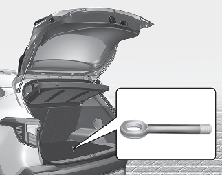 Ouvrez le hayon et retirez le crochet de remorquage de la boîte à outils.