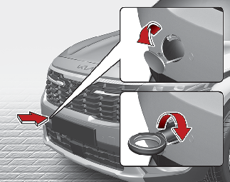 Pour installer le crochet de remorquage, introduisez-le dans le trou et tournez-le dans le sens des aiguilles d’une montre