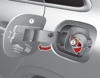 추운 날씨에 커버 주변이 얼어서 연료 주입구 커버(1)가 열리지 않으면, 커버 주위를 가볍게 두드리거나 누르십시오 .