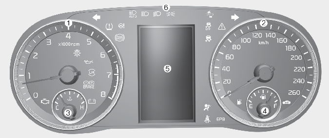 * 예시된 계기판 형상과 LCD화면의 내용은 실제 차량의 형상 및 내용과 상이 할 수 있습니다.