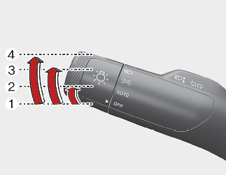 미등, 차폭등, 번호판등, 계기판등이 조명됩니다.