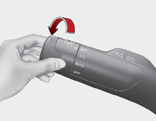 미등 위치의 조명과 전조등이 켜집니다.