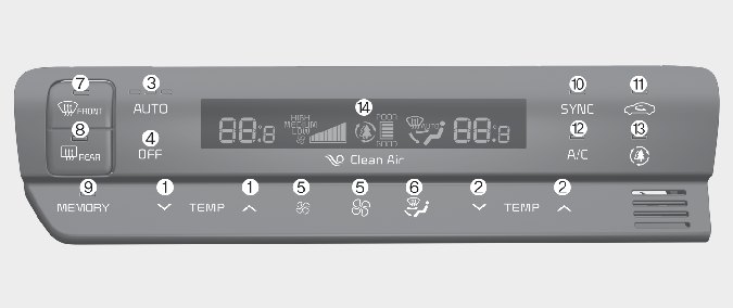 엔진 시동이 걸리지 않은 키 「ON」상태에서도 히터/에어컨을 작동할 수는 있지만 효과 면에서 엔진 시동 상태보다 떨어질 뿐만 아니라 배터리가 빨리 방전될 수 있으므로 반드시 엔진 시동 상태에서 작동하십시오.