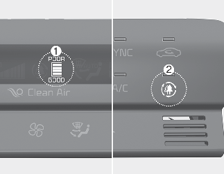 공기 청정 모드 버튼(2)을 누르면 버튼(2)에 불이 켜지고, 작동 표시 창에 작동 상태(1)가 표시되면서 공기 청정 시스템이 작동합니다.