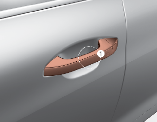 등록된 스마트폰의 NFC 안테나를 운전석 또는 동승석 도어 핸들 인증 패드 중앙에 2초 이상 접촉하면 도어가 잠금 또는 잠금 해제됩니다.