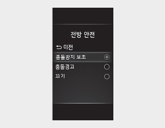 ‘충돌 경고’를 선택하면 충돌 위험 상황에서 경고음만 울립니다. 브레이크 제어는 보조하지 않으므로 운전자가 직접 브레이크 페달을 조작해야 합니다.
