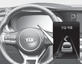 편제동 제어 작동 시 실외 미러 경고등과 헤드업 디스플레이(사양 적용 시)의 경고등이 일정시간 동안 깜빡입니다. 그리고 계기판에 경고문을 표시함과 동시에 경고음이 작동합니다.
