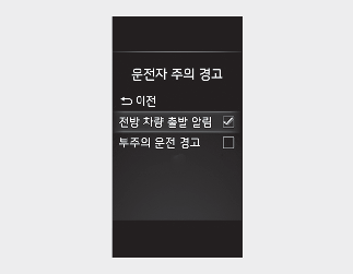 전방 차량 출발 알림 기능이 전방 차량 출발 상황을 알려주더라도 운전자가 직접 주변 상황을 판단한 후 출발하여야 합니다.
