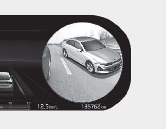 계기판 또는 인포테인먼트 시스템의 설정 메뉴에서 후측방 모니터 사용 여부를 선택할 수 있습니다(「운전자 보조→후측방 안전→영상 표시」).