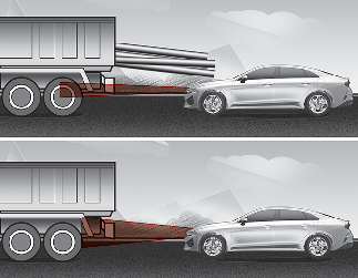 다음과 같은 때는 선행 차량을 정확하게 인식하지 못할 수 있으니 항상 주의하십시오.