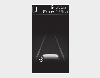 차로 유지 보조가 차로를 인식하면 차로의 색상이 회색에서 흰색으로 바뀝니다.