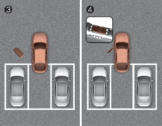 하차가 어려운 좁은 주차 공간에서 원격 전/후진 활용 방법(직각 주차)