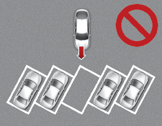 원격 스마트 주차 보조는 사선 주차 공간으로 입차를 제공하지 않습니다. 만약 진입이 가능한 공간이라도 기능이 정상적으로 작동을 못할 수 있으므로 기능을 사용하지 마십시오.