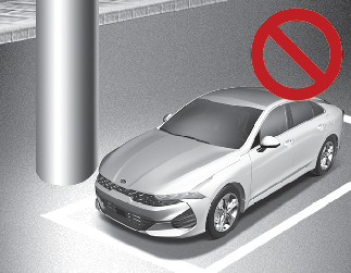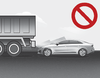 트럭 등 적재함 높이가 높은 대형 차량 주변에서 원격 스마트 주차 보조를 사용하면 접촉 사고가 발생할 수 있으므로 사용하지 마십시오.