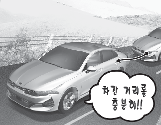 차간 거리를 충분히 확보하고 스티어링 휠을 천천히 조작하십시오.