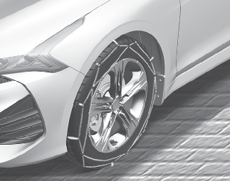 본 차량에 부적합한 체인을 사용하면 차체를 손상시키므로 반드시 적절한 체인을 사용하시고 장착은 체인 제작사에서 제공하는 설명서를 참고하여 차체에 손상이 가지 않도록 주의하십시오. 눈길, 빙판길 외에는 체인의 사용을 삼가시고, 체인 장착 시에는 체인 제작사에서 추천하는 규정속도 이하 또는 30 km/h 이내로 주행하십시오.