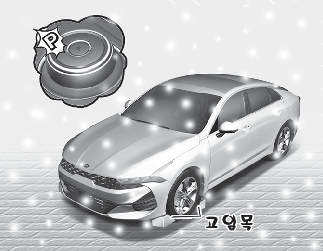 매우 추운 날씨의 주·정차 시 주차 브레이크를 작동해 놓으면 브레이크 장치가 얼어 붙어버릴 우려가 있으므로 주차 브레이크는 가능한 풀어놓은 상태에서 주차하십시오. 경사가 없는 평지에 변속 위치를 「P」(주차) 위치로 하고, 타이어에는 고임목을 받쳐 차가 움직이지 않도록 하십시오.