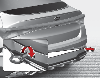바퀴가 진흙, 모래 또는 차량 자체의 힘으로는 빠져 나올 수 없는 상태일 경우 비상 견인 고리를 이용하여 차량을 견인하지 마십시오.