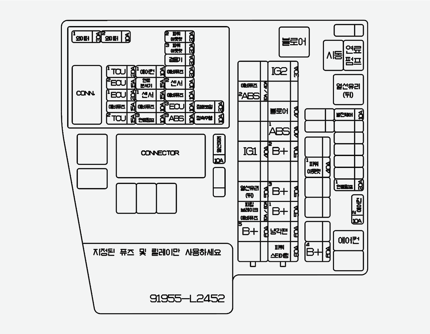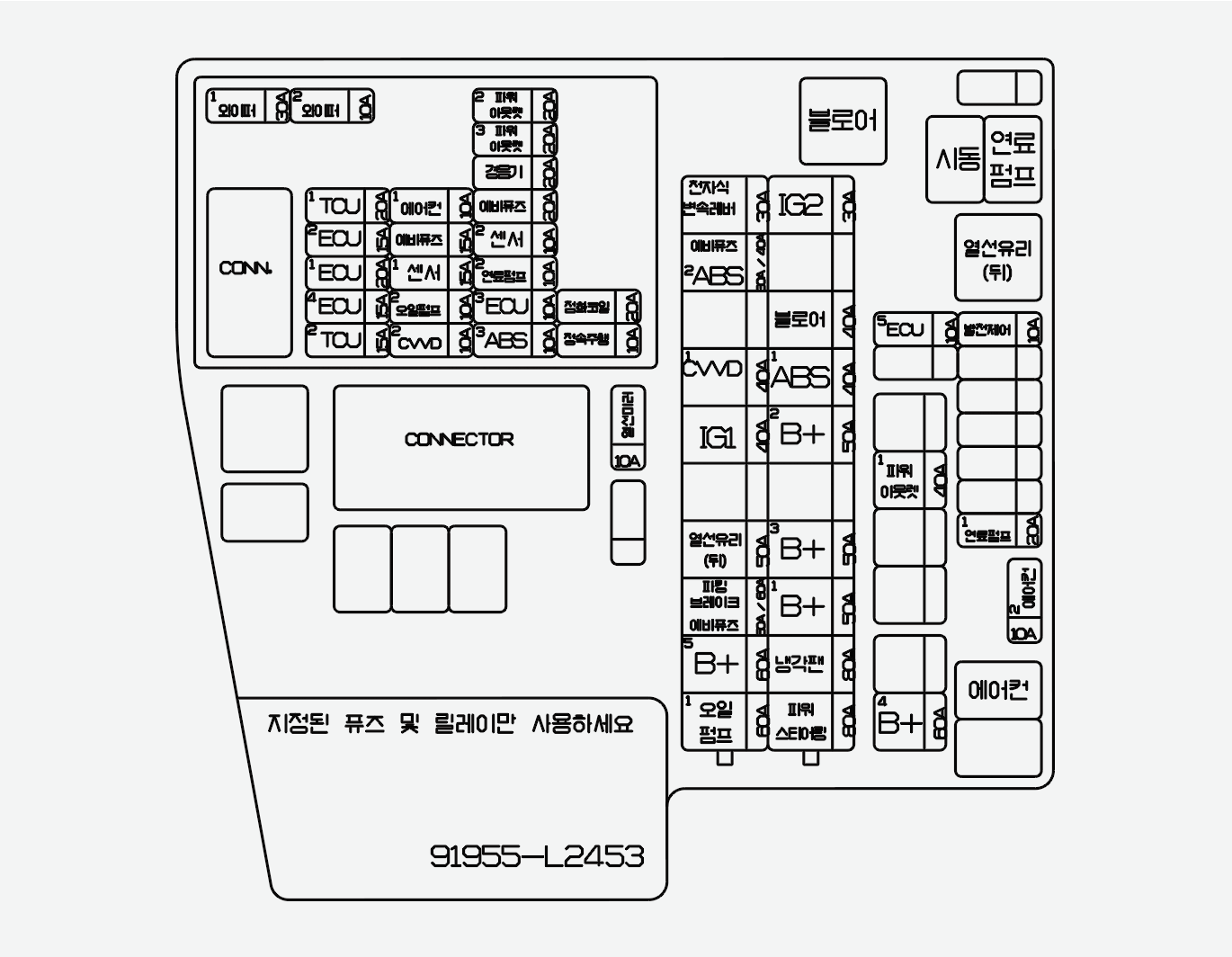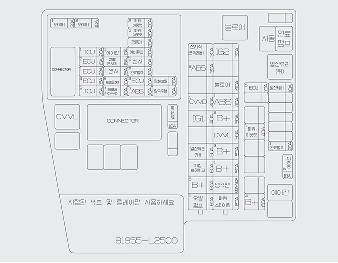 엔진룸 (퓨즈/릴레이 박스) 라벨 (운전석 쪽)
