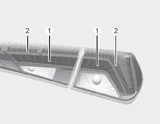 LED 타입의 제동등(1), 미등(2)이 켜지지 않으면 가까운 자사 직영 서비스센터 또는 서비스 협력사에 점검을 의뢰하십시오 .
