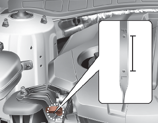 보충 후에는 오일양이 규정량에 속하는지 레벨 게이지로 다시 확인하십시오.