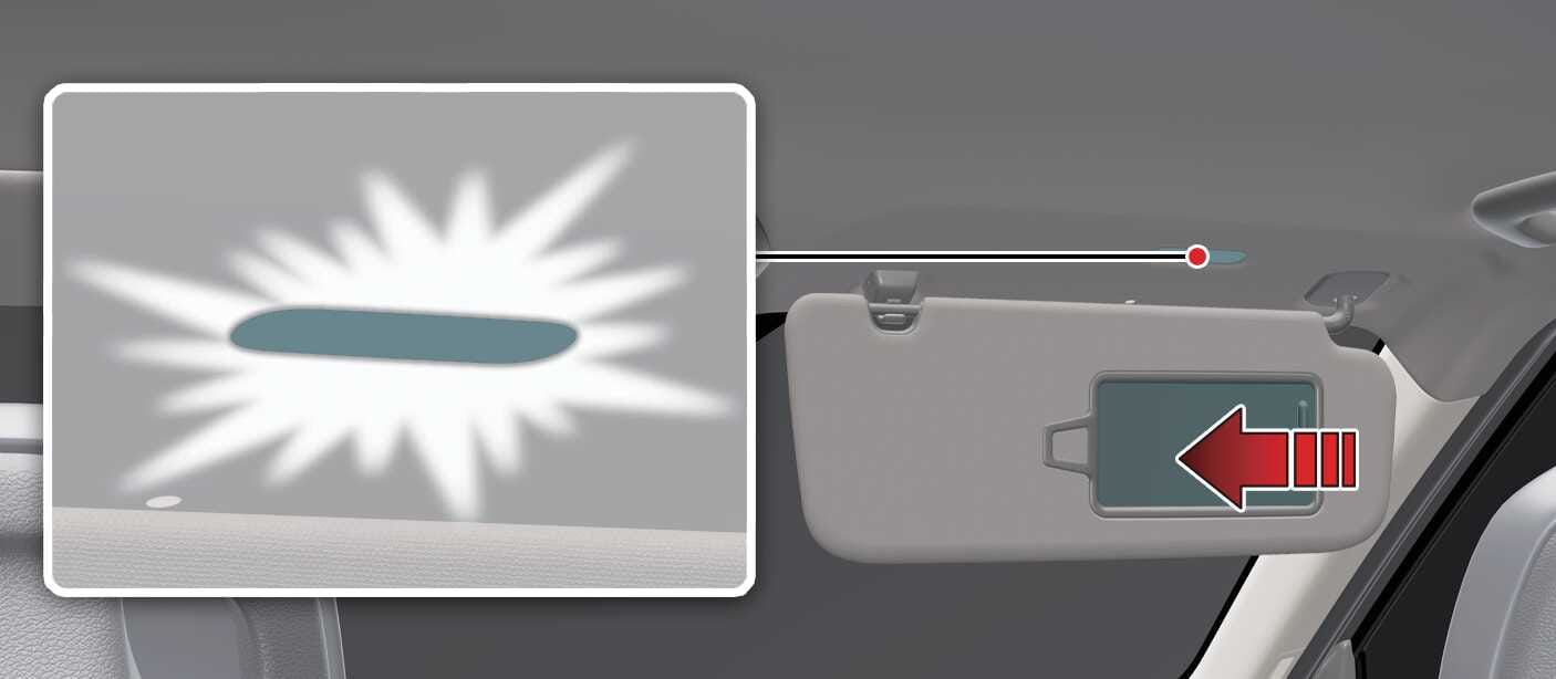 La lampe s’allume lorsque le pare-soleil est ouvert.