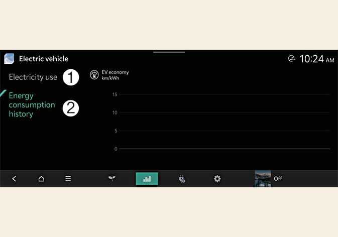 Il est possible de vérifier l’historique de consommation d’énergie, qui comporte la date et la distance parcourue lors du trajet antérieur. L’icône s’affiche pour l’enregistrement de la consommation d'énergie la plus faible.