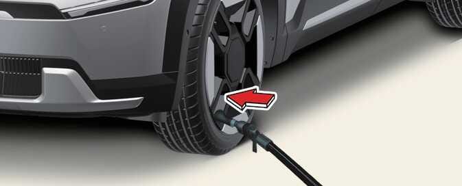 La pression du pneu doit être conforme à la pression spécifiée (se reporter au chapitre "Pneus et roues" à la page 8-3). Si ce n’est pas le cas, arrêtez-vous immédiatement et rendez-vous chez un concessionnaire/réparateur agréé Kia ou appelez un service d’assistance routière ou de remorquage.