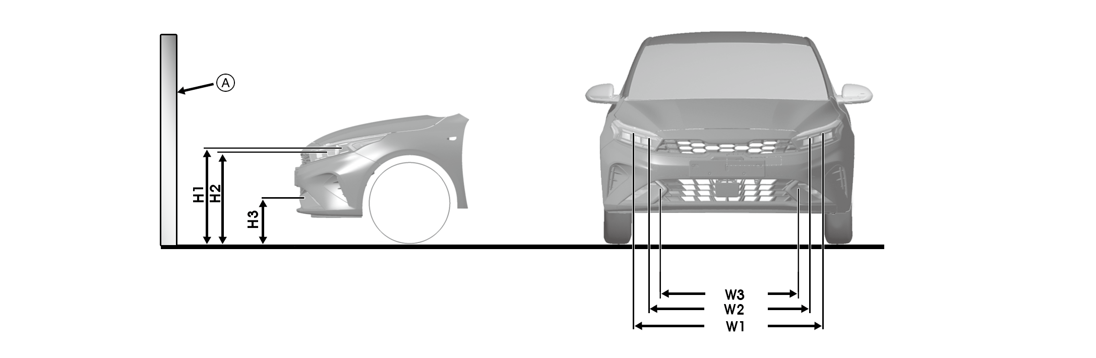 ارسم على الشاشة خطين رأسيين (يمر كل منهما بمركز المصباح الأمامي المناظر) وخطًا أفقيًا (يمر بمركز كل من المصباحين الأماميين).