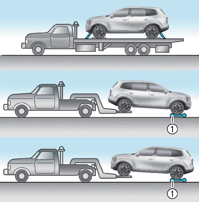 إذا كان الجر في حالات الطوارئ ضروريًا، فنوصي بإجراء ذلك من خلال أحد وكلاء Kia المعتمدين أو خدمة شاحنة الجر التجارية.