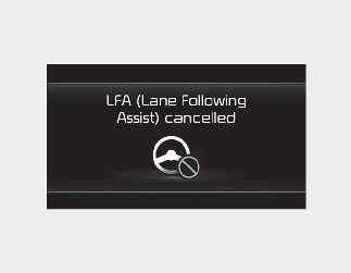 If the driver still does not have their hands on the steering wheel after the hands-off warning, the ‘LFA (Lane Following Assist) cancelled’ warning message will appear and Lane Following Assist will be automatically cancelled.