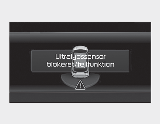 Advarselsmeddelelsen ‘Ultralydssensorsensor eller blokering’ vises på klyngen.