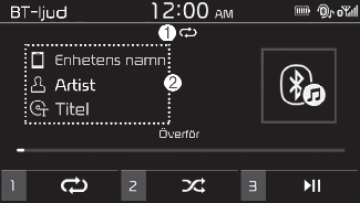 • Beroende på den anslutna Bluetooth-enheten, mobiltelefonen eller musikspelaren som du använder kan uppspelningsstyrningen variera.