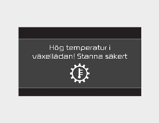 Om det här sker ska du stanna på en säker plats, stanna fordonet med motorn igång, lägg i broms och växla fordonet till P (parkering) och låt växellådan kylas ned.