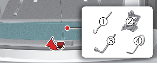 Dvigalka in izvijač za kolesne matice sta spravljena v prtljažniku.