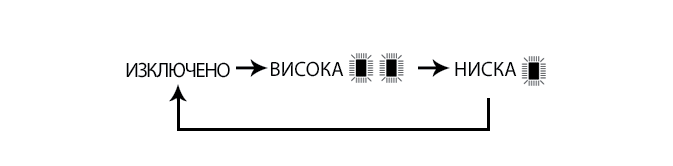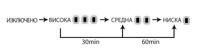 При всяко натискане на лостчетата или бутоните настройката за температурата на седалката се променя по следния начин: