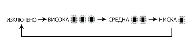 Нагревателят на седалката (с охлаждане) по подразбиране е изключен, когато бутонът за стартиране/спиране на двигателя бъде включен.