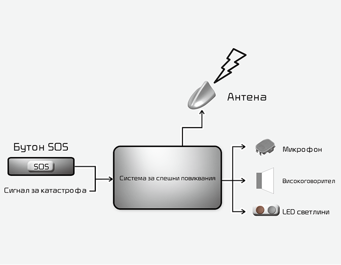 Начало > Какво да правите при авария > Общоевропейска система eCall > Описание на бордовата системата eCall