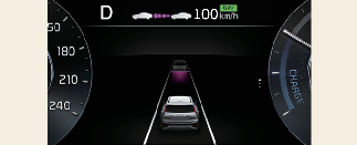 När den navigationsbaserade smarta farthållaren används kommer det att visas på instrumentpanelen enligt följande: